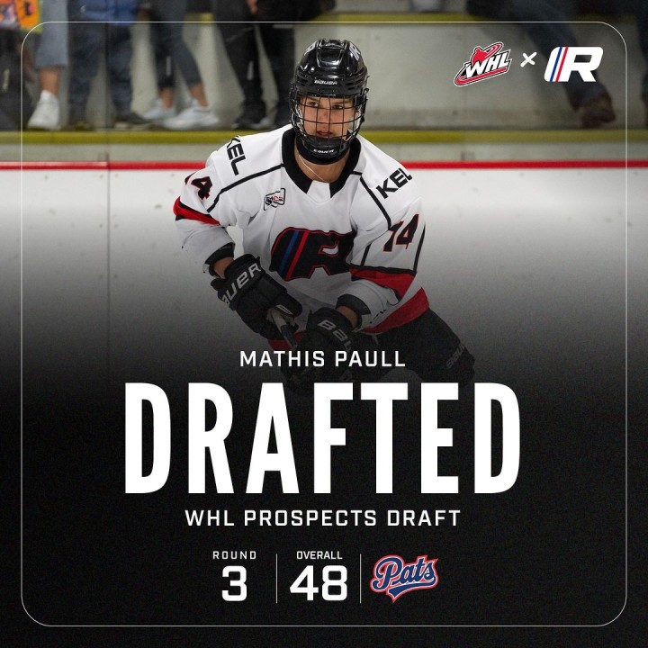 With the 48th overall pick in the 3rd round of the 2024 WHL Bantam Draft, the Regina Pats selected forward, Mathis Paull. Paull joined the RHA U15 Prep team for the 2023-24 season and put up an impressive 16 goals and 18 assists for 34 points in 27 games in the regular season, and had 1 goal and 2 assists for 3 points in 3 playoff games in the CSSHL.