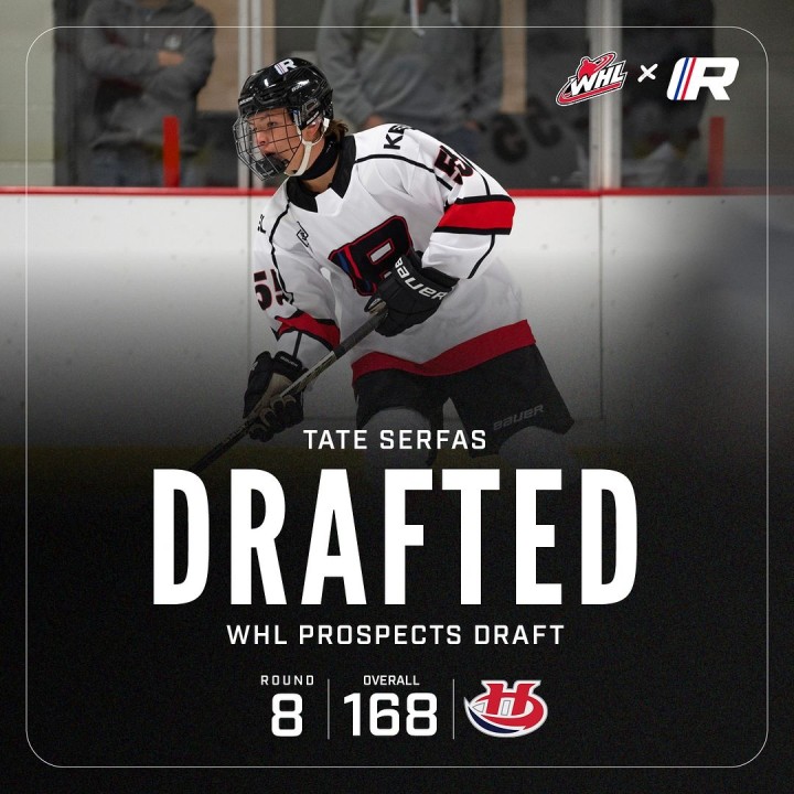 With the 168th overall pick in the 8th round of the 2024 WHL Bantam Draft, the Lethbridge Hurricanes selected right-shot defenceman, Tate Serfas. Serfas joined the RHA U15 Varsity team for the 2022-23 season and put up 10 assists in 24 games in the regular season, and had 2 assists in 3 playoff games in the CSSHL. The following 2023-24 season with the RHA U15 Prep team, Serfas managed to put up 1 goal and 6 assists for 7 points in 26 games in the regular season, and played in 3 CSSHL playoff games.